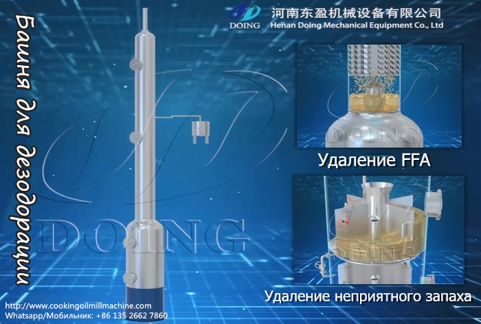 Физическая щелочная рафинация представляет собой процесс удаления свободных жирных кислот с использованием высокотемпературного водяного пара в условиях вакуума. Физическая щелочная рафинация осуществляется в дезодорационной башне. Башня дезодорации разделена на две части, верхняя часть используется для удаления свободных жирных кислот, а нижняя часть используется для удаления запаха из подсолнечного масла. После того, как подсолнечное масло поступает в башню дезодорации, на него подается водяной пар. FFA удаляются в зависимости от температуры кипения масла и FFA.
